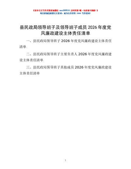 / 县民政局领导班子及领导班子成员2026年度党风廉政建设主体责任清单