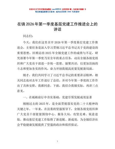 / 在镇2026年第一季度基层党建工作推进会上的讲话