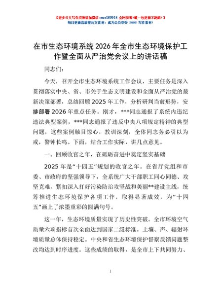 / 在市生态环境系统2026年全市生态环境保护工作暨全面从严治党会议上的讲话稿