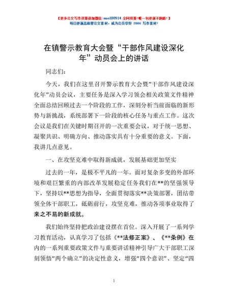 / 在镇警示教育大会暨“干部作风建设深化年”动员会上的讲话