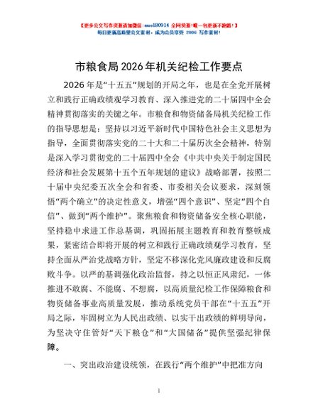 / 市粮食局2026年机关纪检工作要点