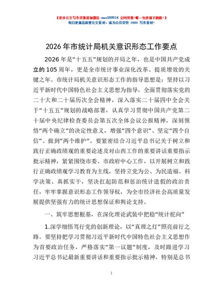 / 2026年市统计局机关意识形态工作要点