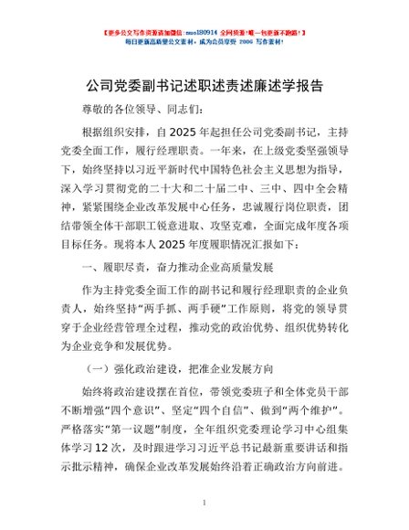/ 公司党委副书记述职述责述廉述学报告