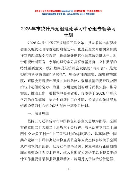 / 2026年市统计局党组理论学习中心组专题学习计划