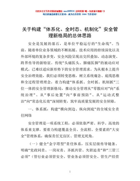 / 关于构建“体系化、全时态、机制化”安全管理新格局的总体思路