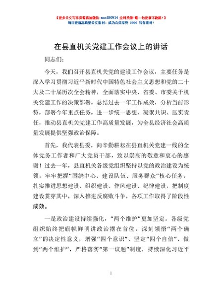 / 在县直机关党建工作会议上的讲话