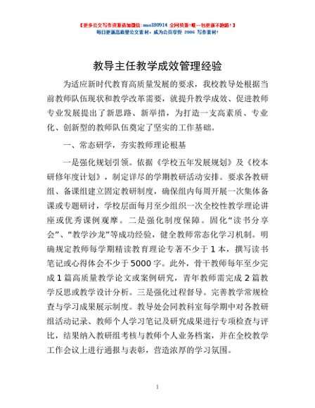 / 教导主任教学成效管理经验