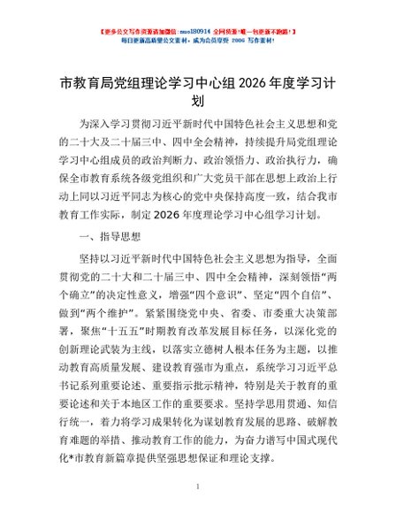 / 市教育局党组理论学习中心组2026年度学习计划