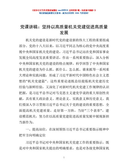 / 党课讲稿:坚持以高质量机关党建促进高质量发展