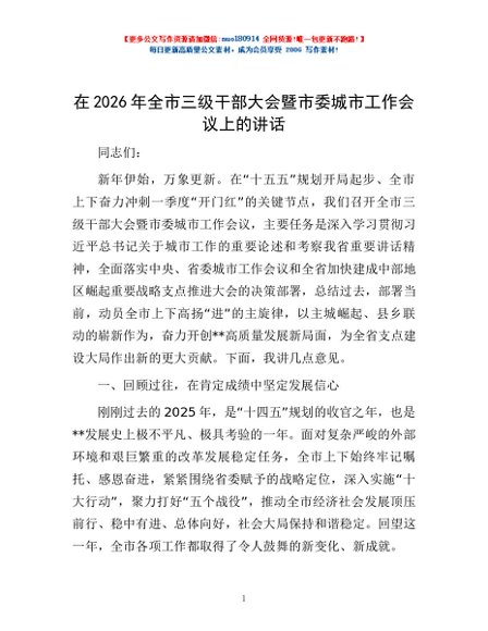 / 在2026年全市三级干部大会暨市委城市工作会议上的讲话