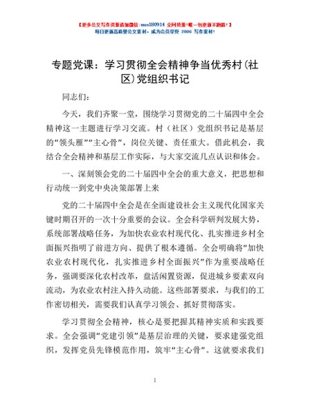 / 专题党课:学习贯彻全会精神 争当优秀村(社区)党组织书记
