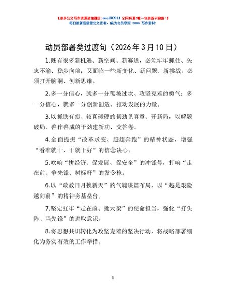 / 动员部署类过渡句(2026年3月10日)