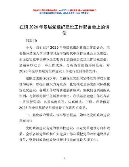 / 在镇2026年基层党组织建设工作部署会上的讲话