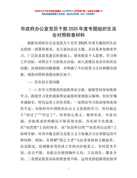 / 市政府办公室党员干部2025年度专题组织生活会对照检查材料