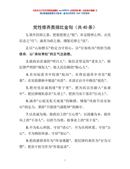 / 党性修养类排比金句(共40条)
