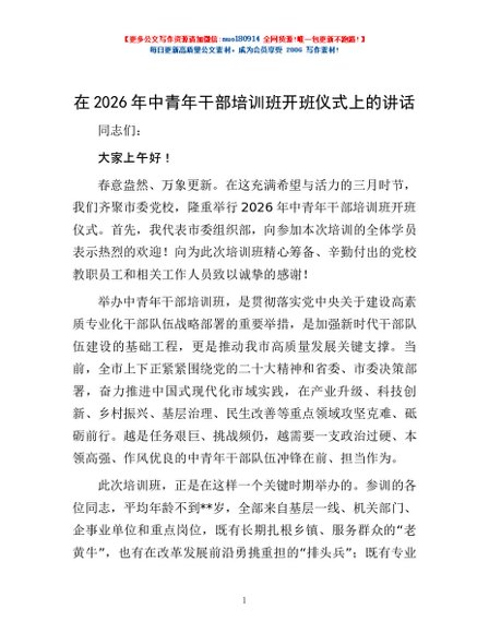 / 在2026年中青年干部培训班开班仪式上的讲话