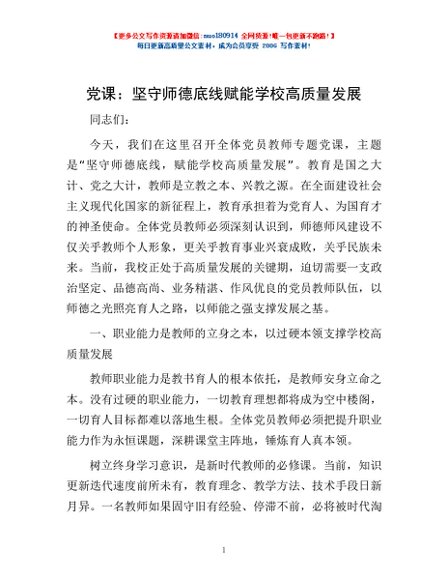 党课:坚守师德底线 赋能学校高质量发展