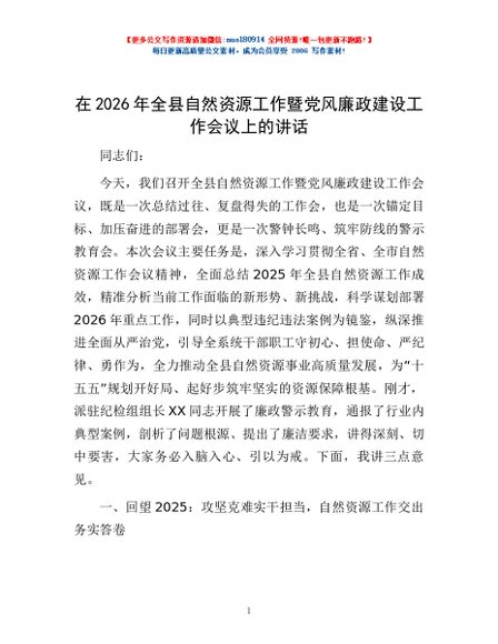 / 在2026年全县自然资源工作暨党风廉政建设工作会议上的讲话