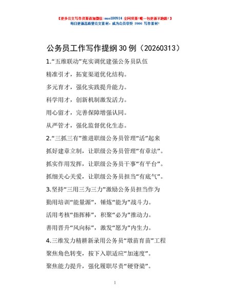 / 公务员工作写作提纲30例(20260313)