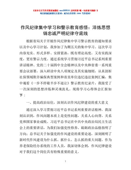 / 作风纪律集中学习和警示教育感悟:淬炼思想铸忠诚 严明纪律守底线
