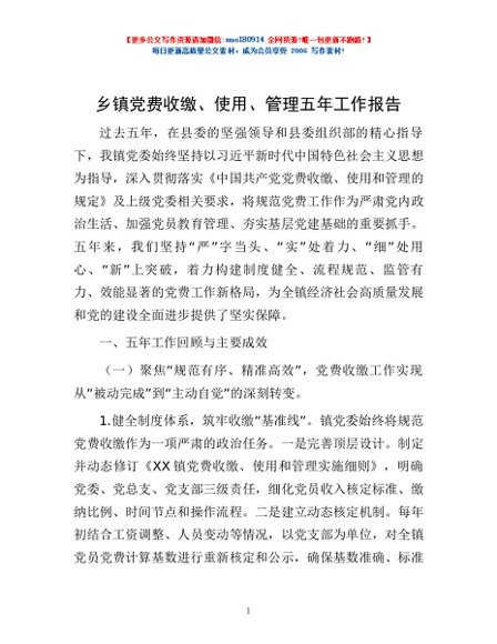 / 乡镇党费收缴、使用、管理五年工作报告