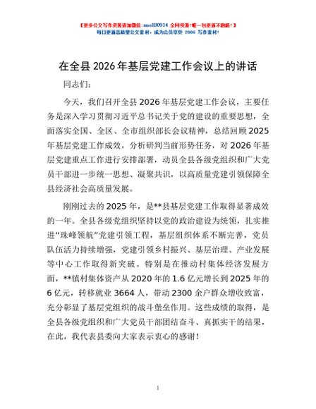 / 在全县2026年基层党建工作会议上的讲话