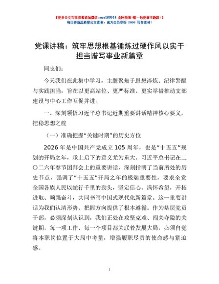 / 党课讲稿:筑牢思想根基 锤炼过硬作风 以实干担当谱写事业新篇章