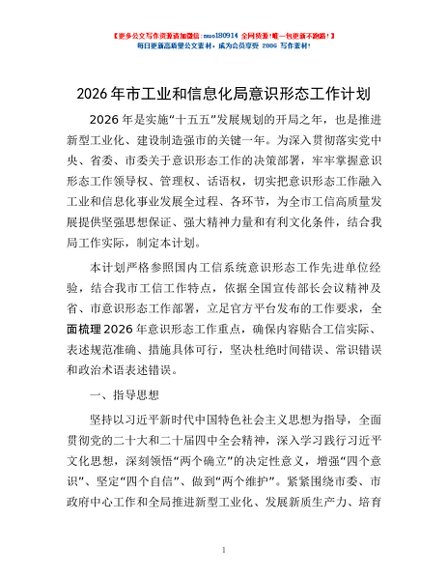 / 2026年市工业和信息化局意识形态工作计划