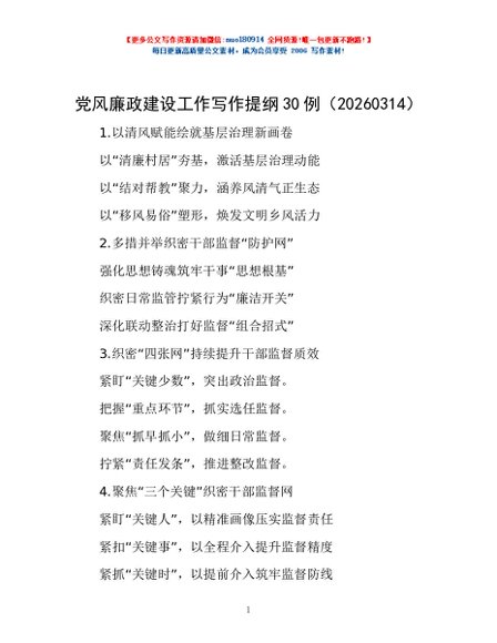 / 党风廉政建设工作写作提纲30例(20260314)
