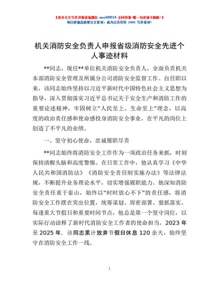 / 机关消防安全负责人申报省级消防安全先进个人事迹材料