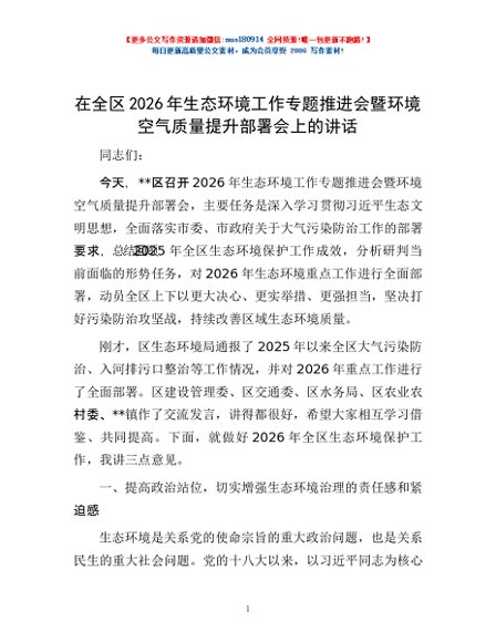/ 在全区2026年生态环境工作专题推进会暨环境空气质量提升部署会上的讲话