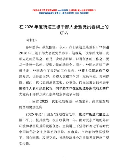 / 在2026年度街道三级干部大会暨党员春训上的讲话