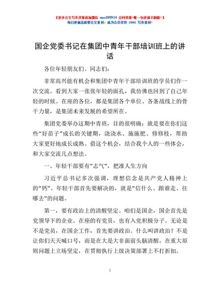 / 国企党委书记在集团中青年干部培训班上的讲话