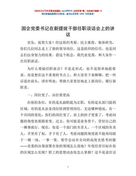 / 国企党委书记在新提拔干部任职谈话会上的讲话