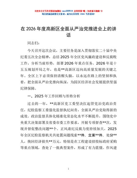 / 在2026年度高新区全面从严治党推进会上的讲话
