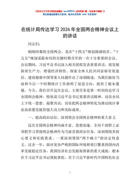 / 在统计局传达学习2026年全国两会精神会议上的讲话
