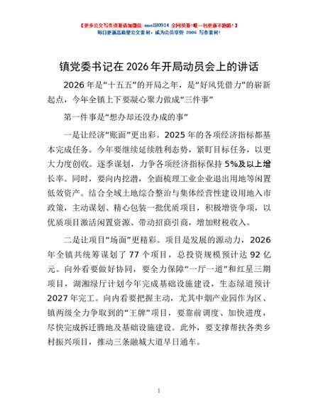 / 镇党委书记在2026年开局动员会上的讲话