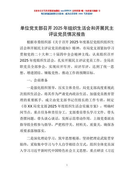 / 单位党支部召开2025年组织生活会和开展民主评议党员情况报告