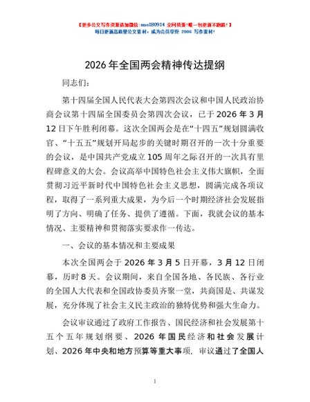 / 2026年全国两会精神传达提纲