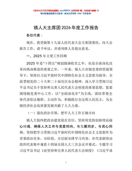 / 镇人大主席团2026年度工作报告