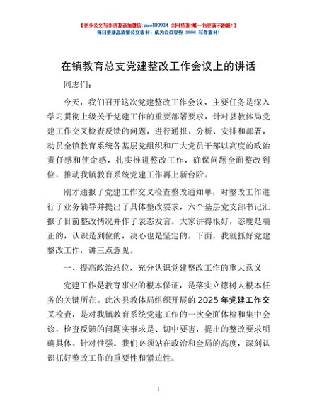 / 在镇教育总支党建整改工作会议上的讲话