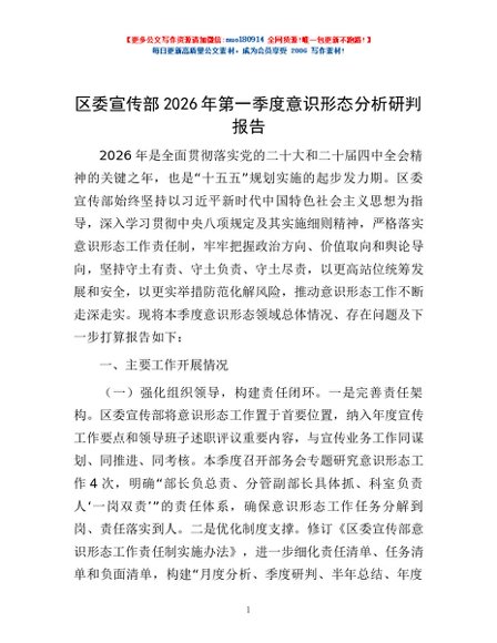 / 区委宣传部2026年第一季度意识形态分析研判报告