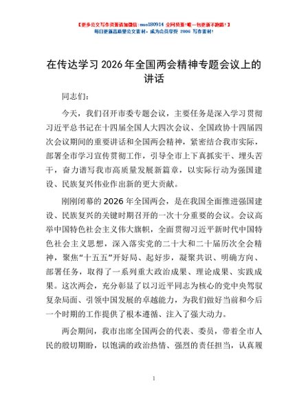 / 在传达学习2026年全国两会精神专题会议上的讲话