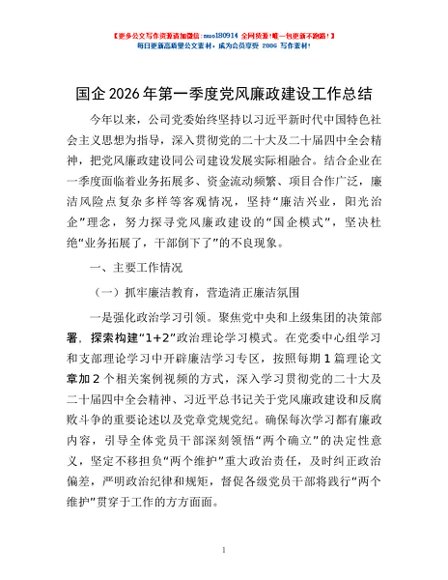 / 国企2026年第一季度党风廉政建设工作总结