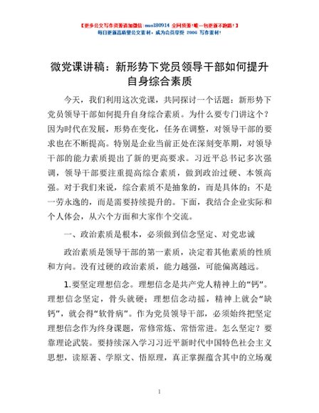 / 微党课讲稿:新形势下党员领导干部如何提升自身综合素质