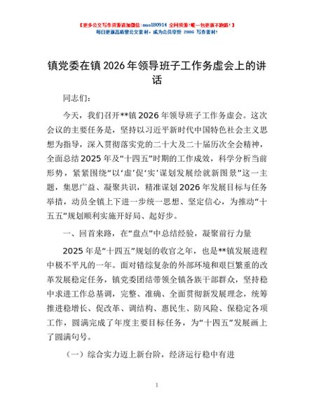 / 镇党委在镇2026年领导班子工作务虚会上的讲话