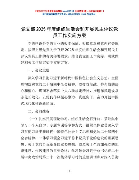 / 党支部2025年度组织生活会和开展民主评议党员工作实施方案