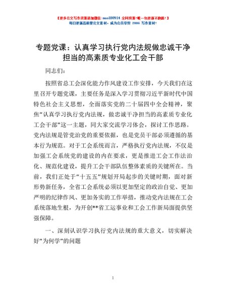 / 专题党课:认真学习执行党内法规 做忠诚干净担当的高素质专业化工会干部