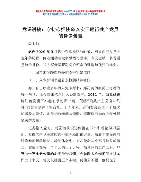 / 党课讲稿:守初心担使命 以实干践行共产党员的铮铮誓言