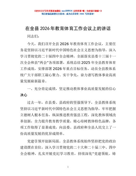 / 在全县2026年教育体育工作会议上的讲话